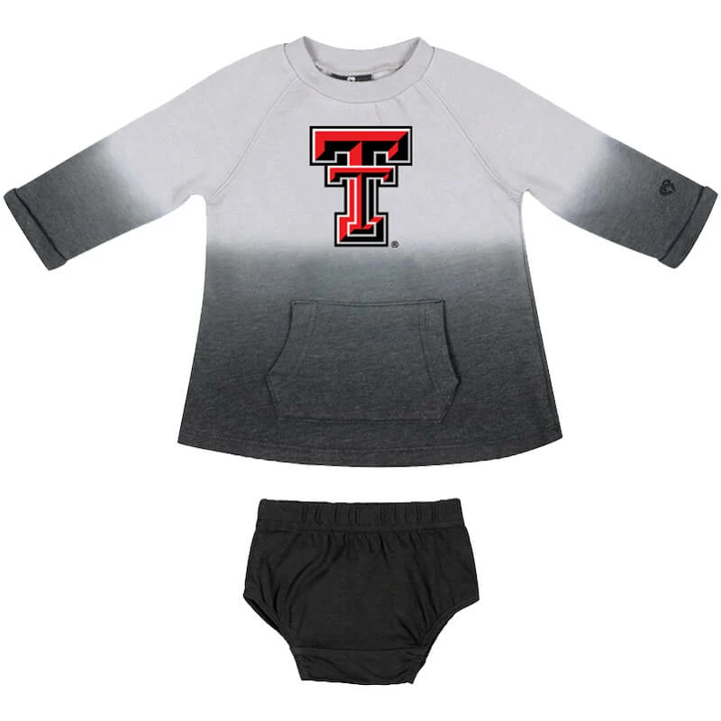 Let your youngest fan’s Texas Tech Red Raiders spirit and style walk Hand in Hand with this Colosseum dress and bloomer set. Along with an ombre design, this set features striking Texas Tech Red Raiders graphics to elevate their blossoming love for the squad. Plus, the soft fabric and roomy raglan sleeves on the sweatshirt bring comfort to your little one’s day.